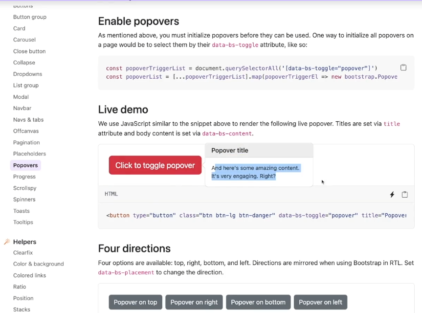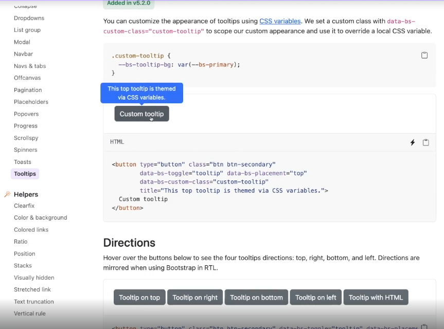 - popovers 랑은 다르게 굳이 클릭하지 않더라도, 마우스를 가져다 대면 그 때 그에 대한 설명이 나오는 기능