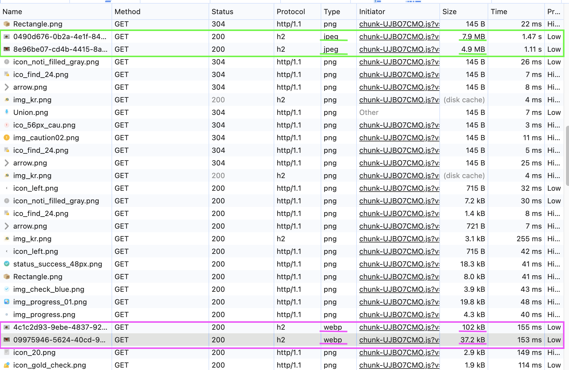 그래서 급하지만 한 번 도 사용해본 적이 없는 indexedDB를 도입하기로 했다. 그 전에 indexedDB의 용량을 확인한 결과 iOS 기준 1GB까지는 지원하지만 아래의 이유로 프론트에서도 이미지 용량을 조절할 필요가 있었다.