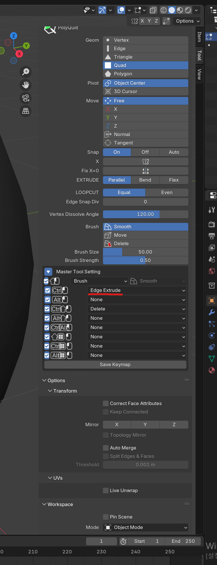 이음세 라인 확인 가능(Ctrl이랑 같이 쓰면 루프로 선택)