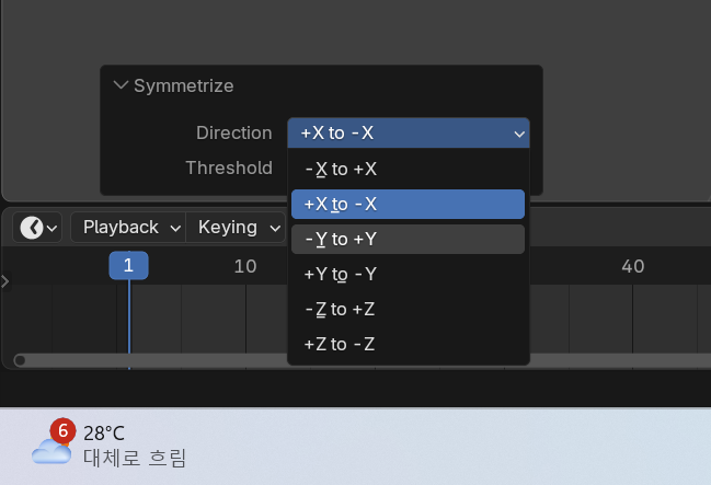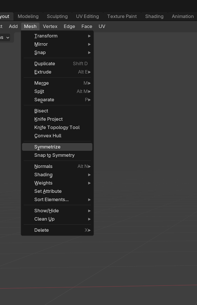 모든 면을 선택하고 메시 메뉴로 가서 symmetrize 선택