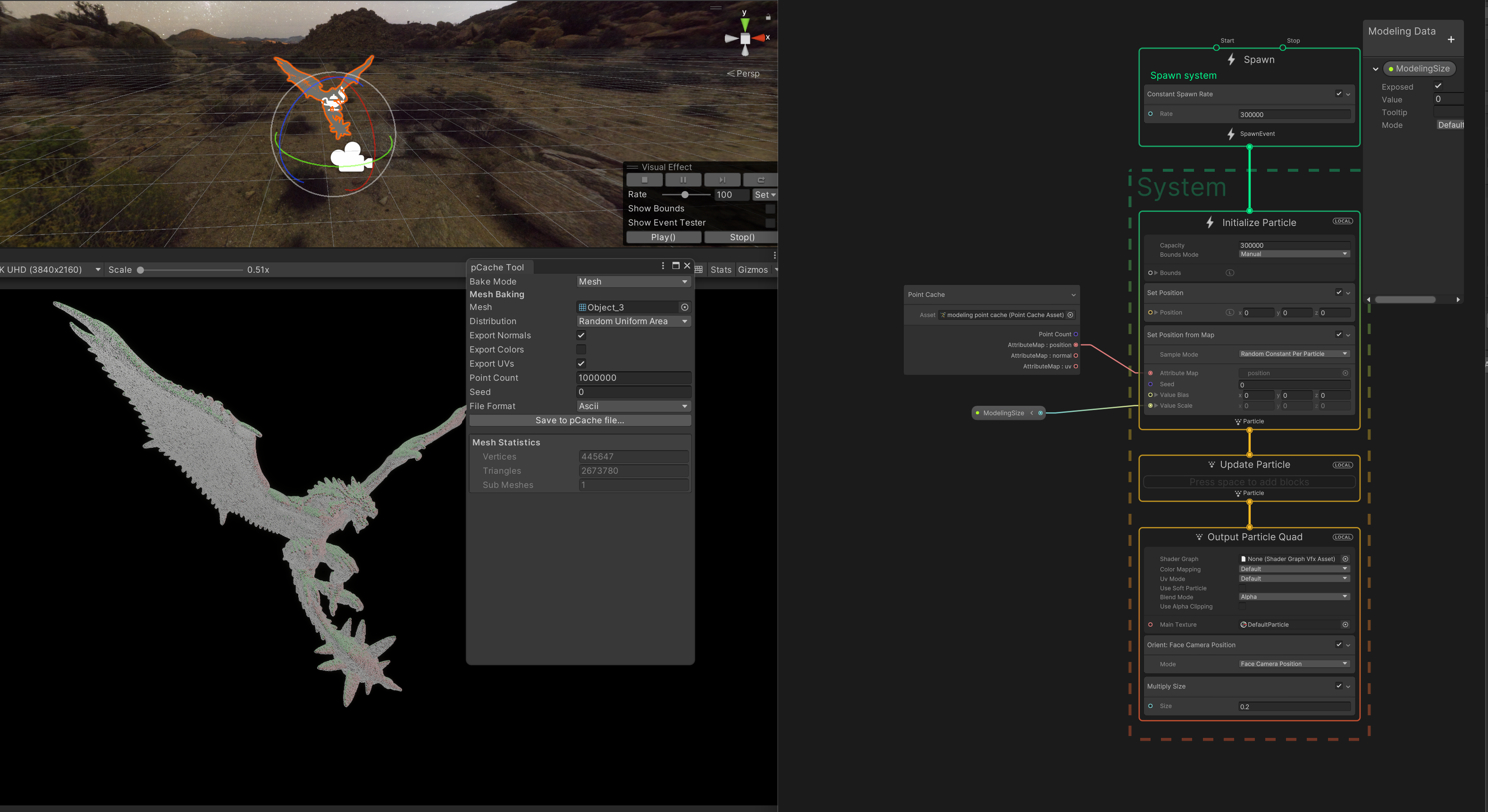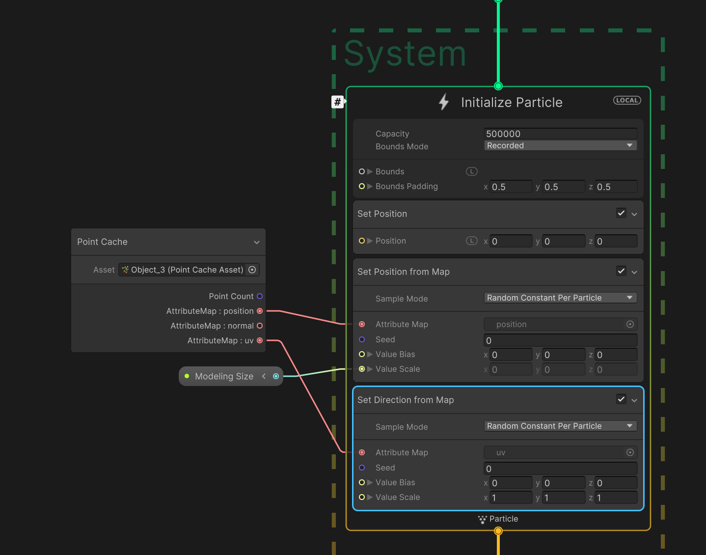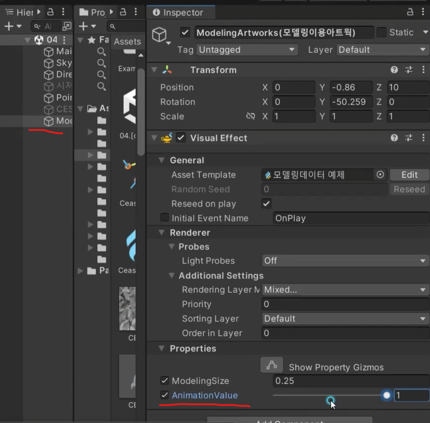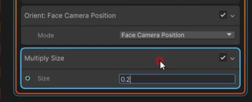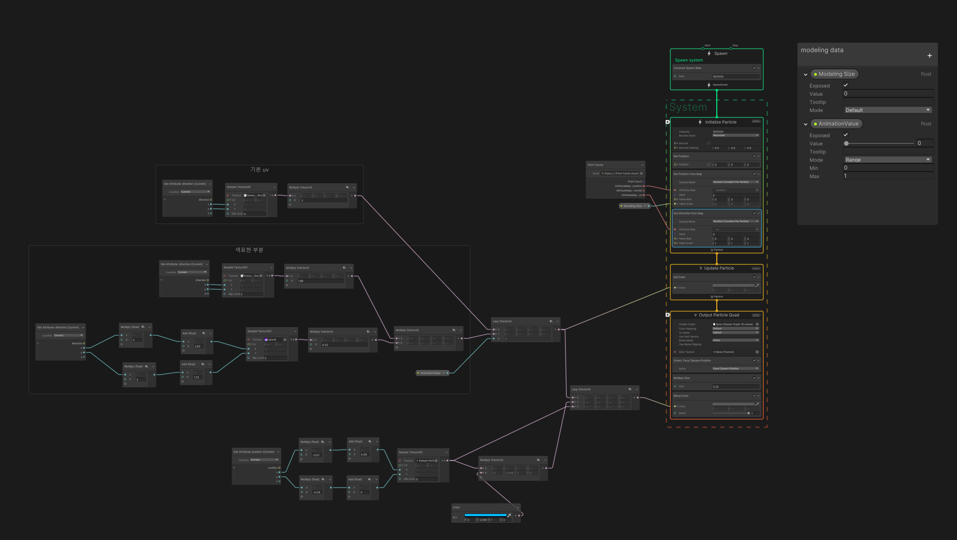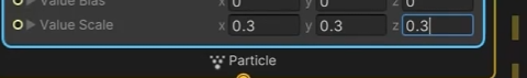 예: Modeling Size현재 10 = 5로 변경 → ValueScale에 연결되면 전반적으로 파티클 분포 범위가 절반으로 줄어듦.