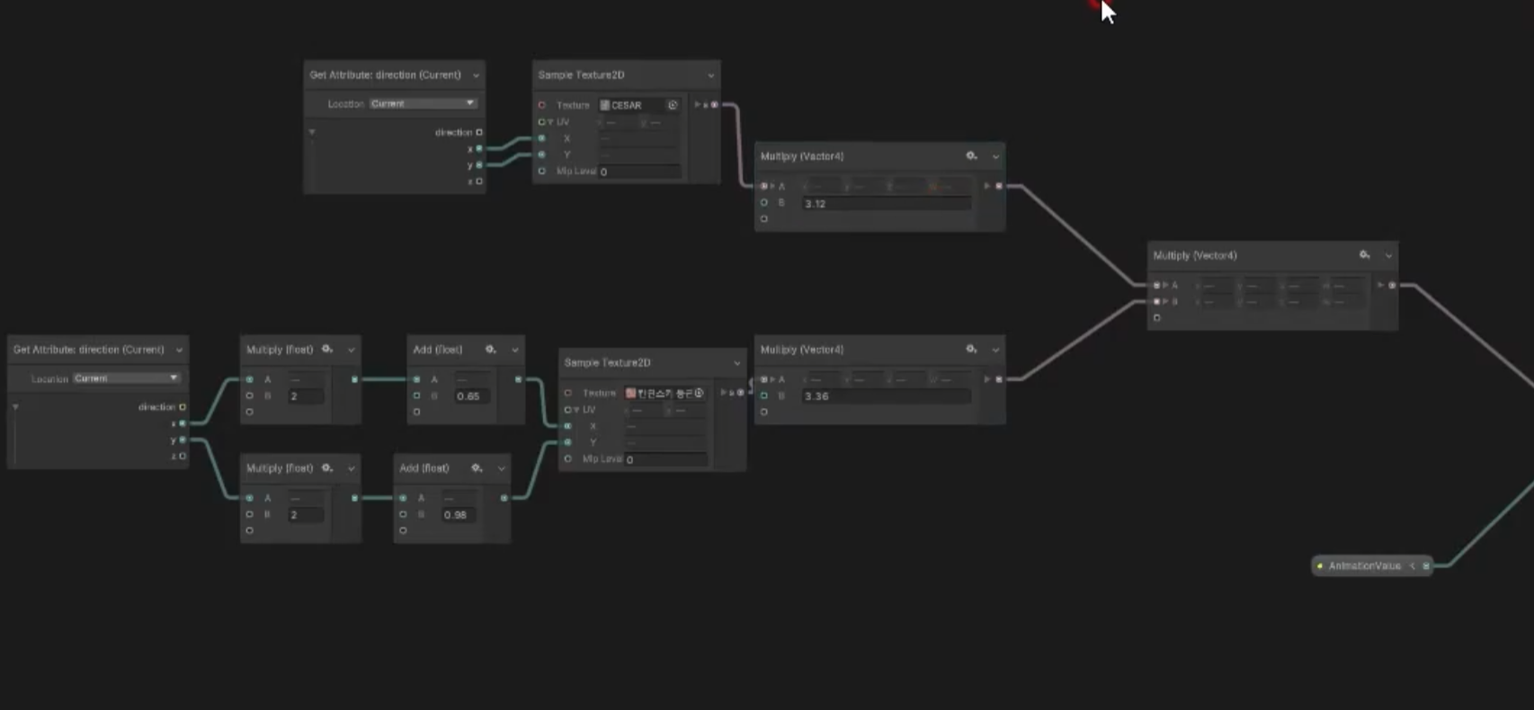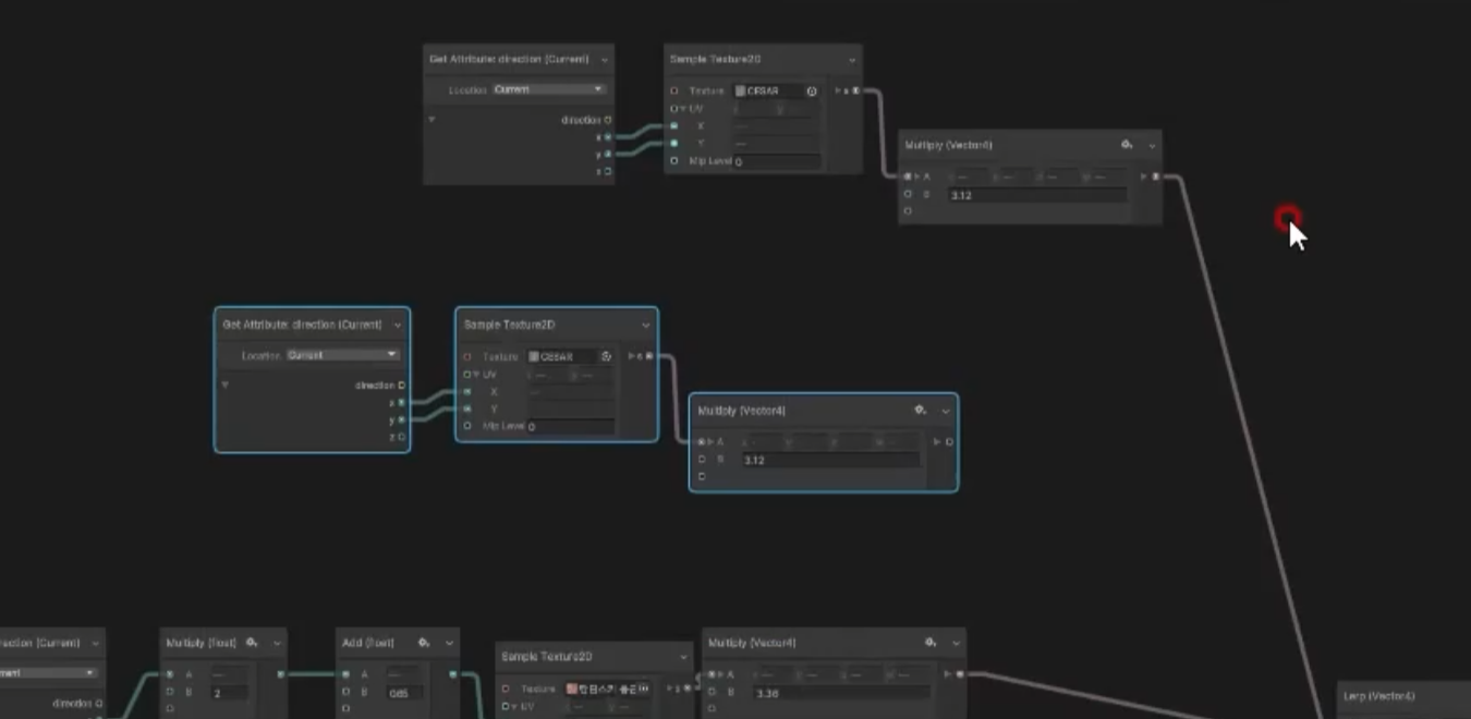 밖에 get attribute: direction와 Sample Texture2D를 생성한다.