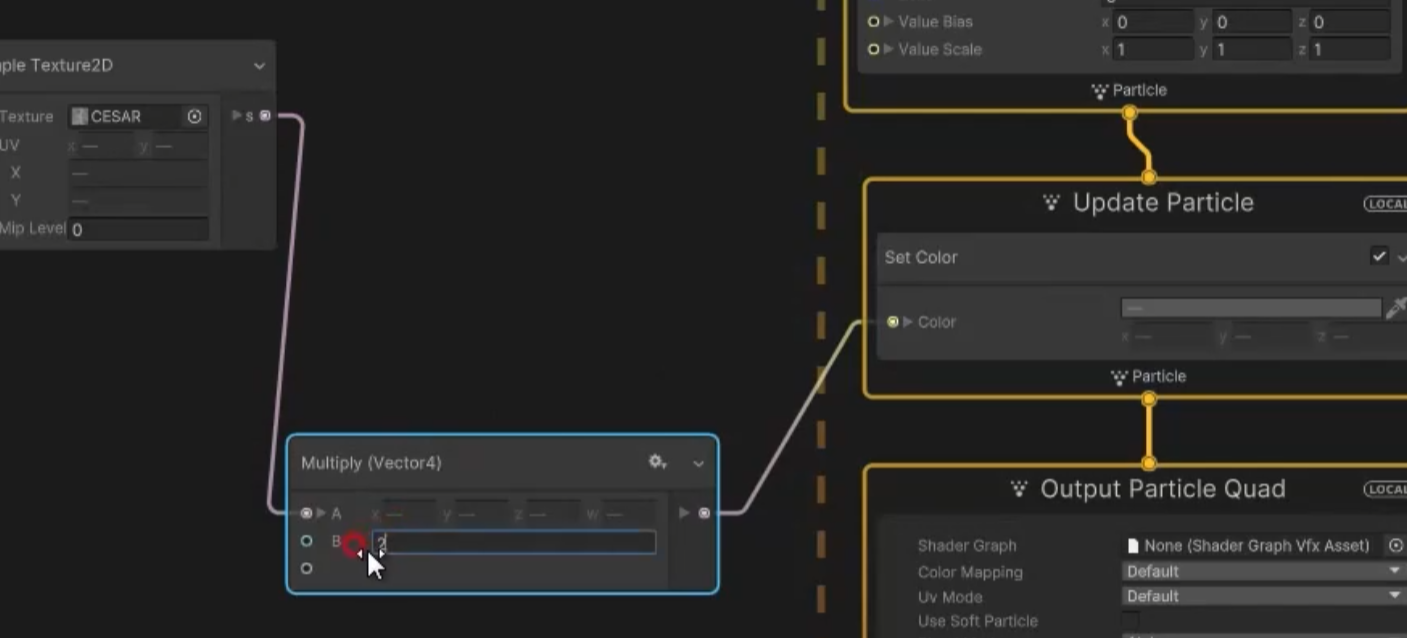 이때 파티클이 너무 어둡거나 밝다면 Multiply를 사용하면 밝기를 조절 할 수 있다.