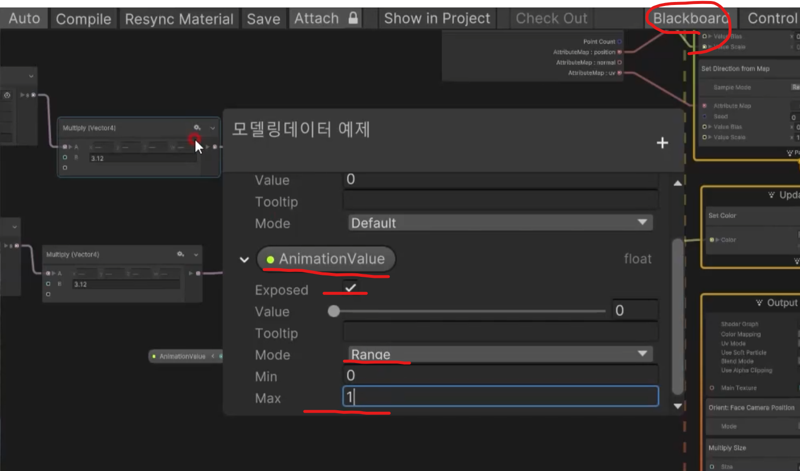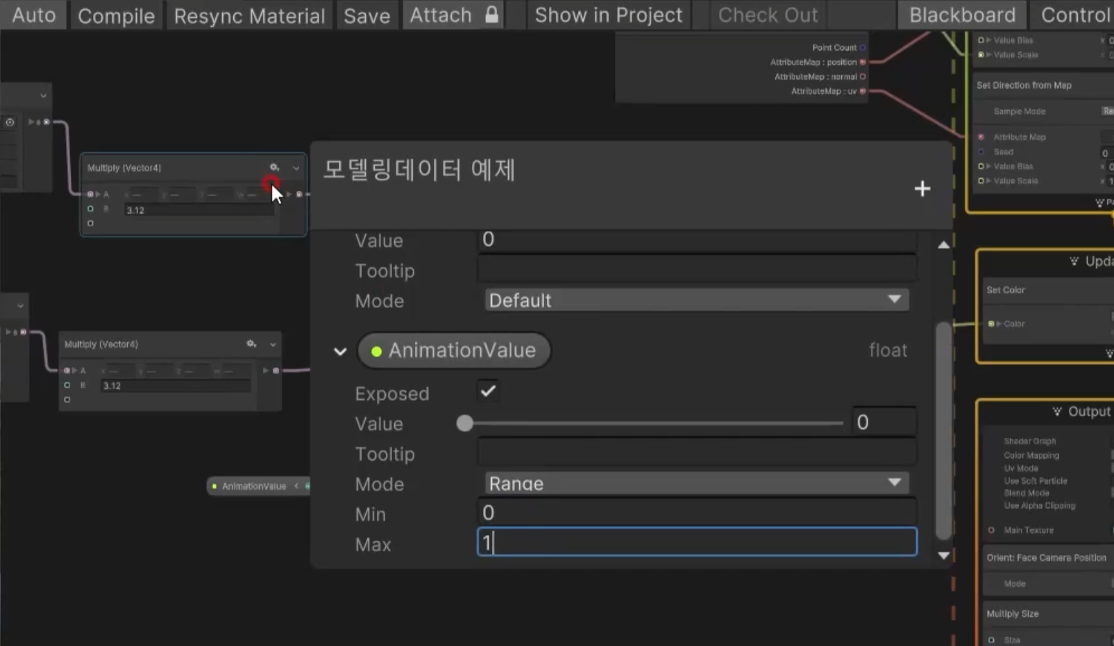 그 다음 레인지를 0에서 1사이로 조정하면 외부인스펙터에서 쉽게 컨트롤할 수 있다.