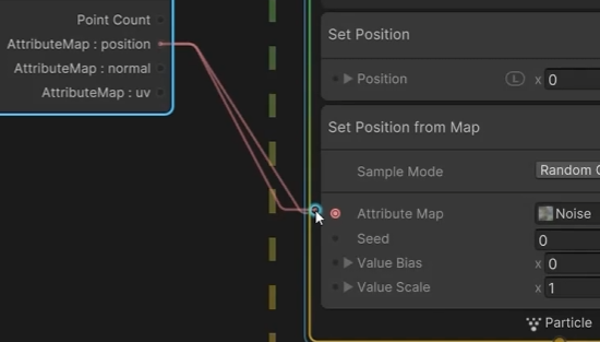 그 후 position값을 Set Position from Map의 Attribute Map에 연결시켜주면 된다 .