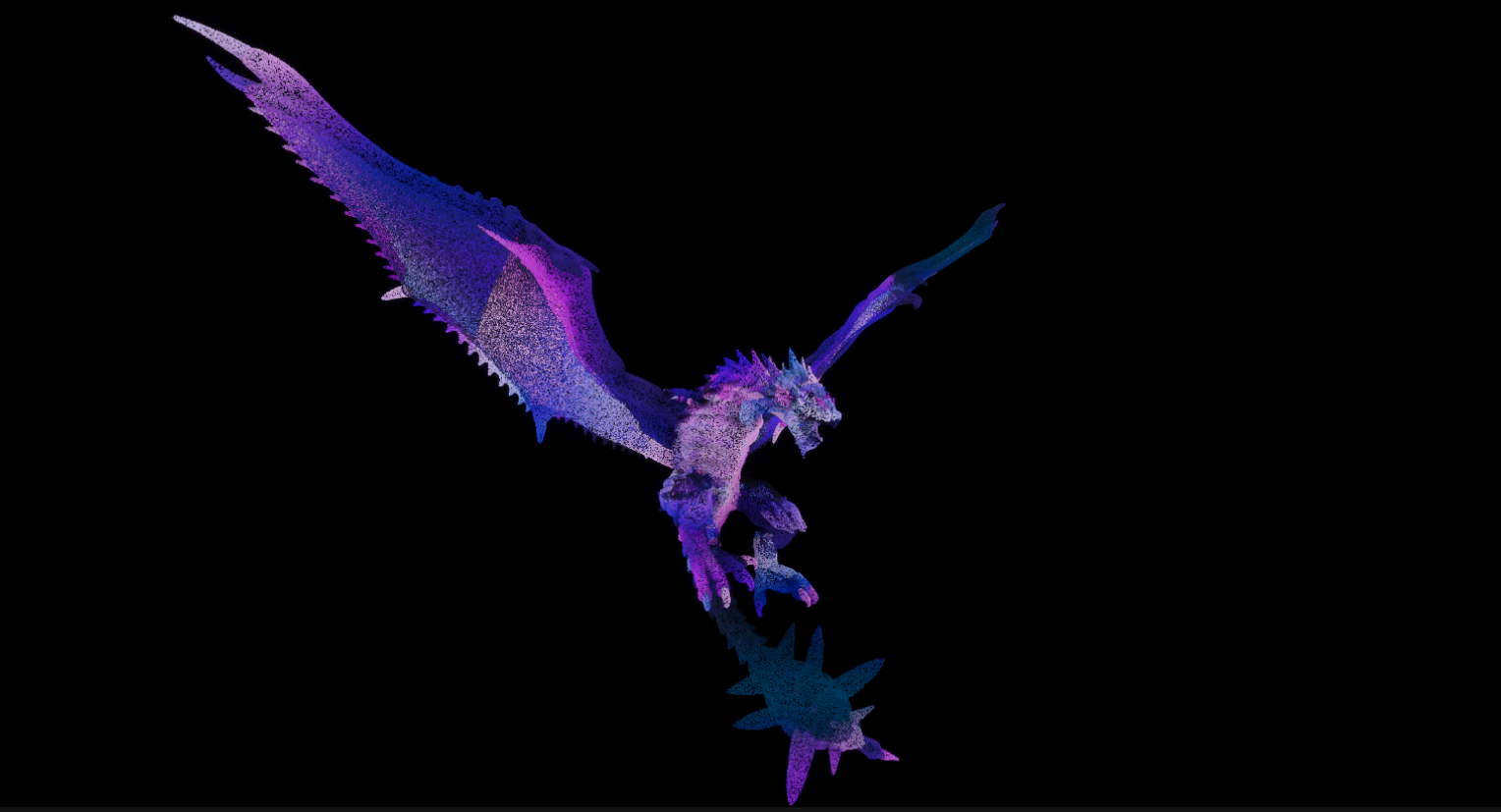 모델링을 돌리면 안보이는 구간이 생긴다. 그 이유는 구성하고 있는 파티클이 쿼드이기 때문이다. (대량의 파티클의 경우 메쉬로 구성되어있으면 과부하가 크다.)