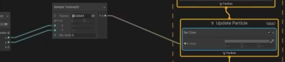Update Particle 박스 안에 set color를 생성하여 연결해준다.