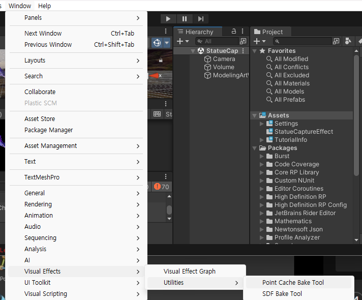 Window - Visual Effect - Utilites - Point Cache Bake Tool을 사용해야 한다.