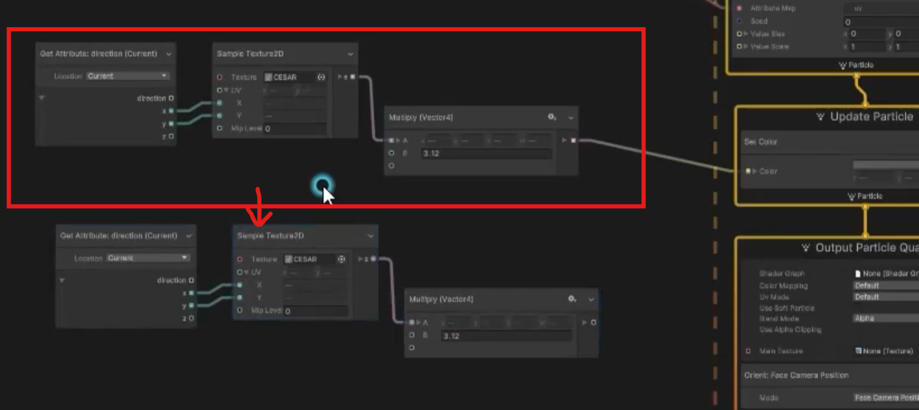 이 섹션은 파티클의 초기 방향(벡터) 을 어트리뷰트에서 가져오는 곳이다.