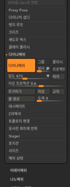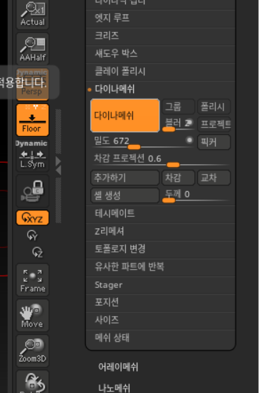 이렇게 두면 면수가 많아지는 것 뿐만아니라 3D적용을 할 때 뭉개지거나 겹쳐지게 표현될 수 있다. 그래서 이 "다이나메쉬" 작업을 해줘야 한다.