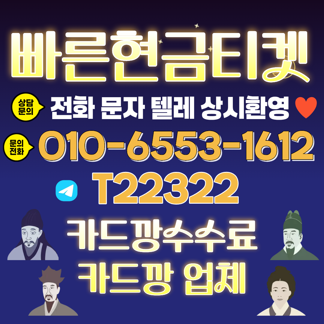 빠른현금티켓 O1O-6553-1612 카드깡수수료 정보에 관한 모든 지식들을 알려드릴게요! 궁금한 점은 아래의 집모양을 눌려 연락주세요 :)