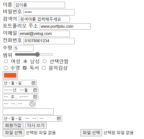 input태그는 사용자의 정보를 입력받기 위해 사용하는 태그로 type속성값에 의해 모양과 기능이 결정된다.