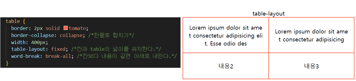- fixed : 칸에 적용한 width값을 고정한다. 한 줄로 영문이 길게 들어가더라도 무시하지 않는다.