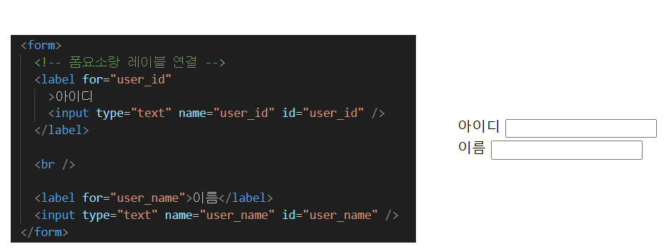 2. <label for="폼요소 이름">레이블 텍스트(폼요소 이름)</label>