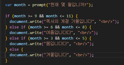 else if문은 두 가지 이상의 조건식과 정해놓은 조건을 만족하지 않았을 때 실행할 코드로 이루어져 있다.