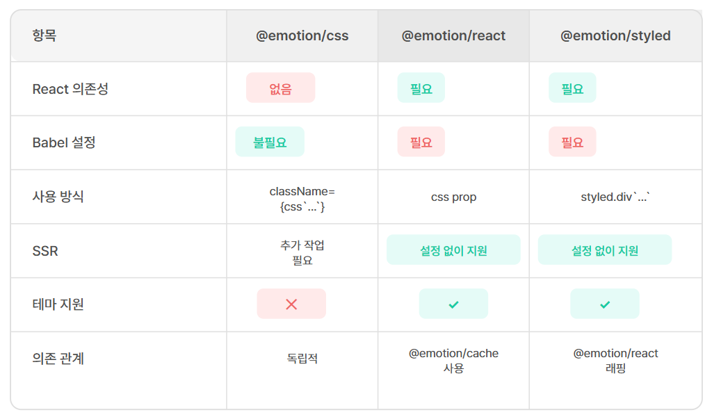 래핑 패키지이기에 무조건 @emotion/react가 의존성으로 함께 설치되어야한다.