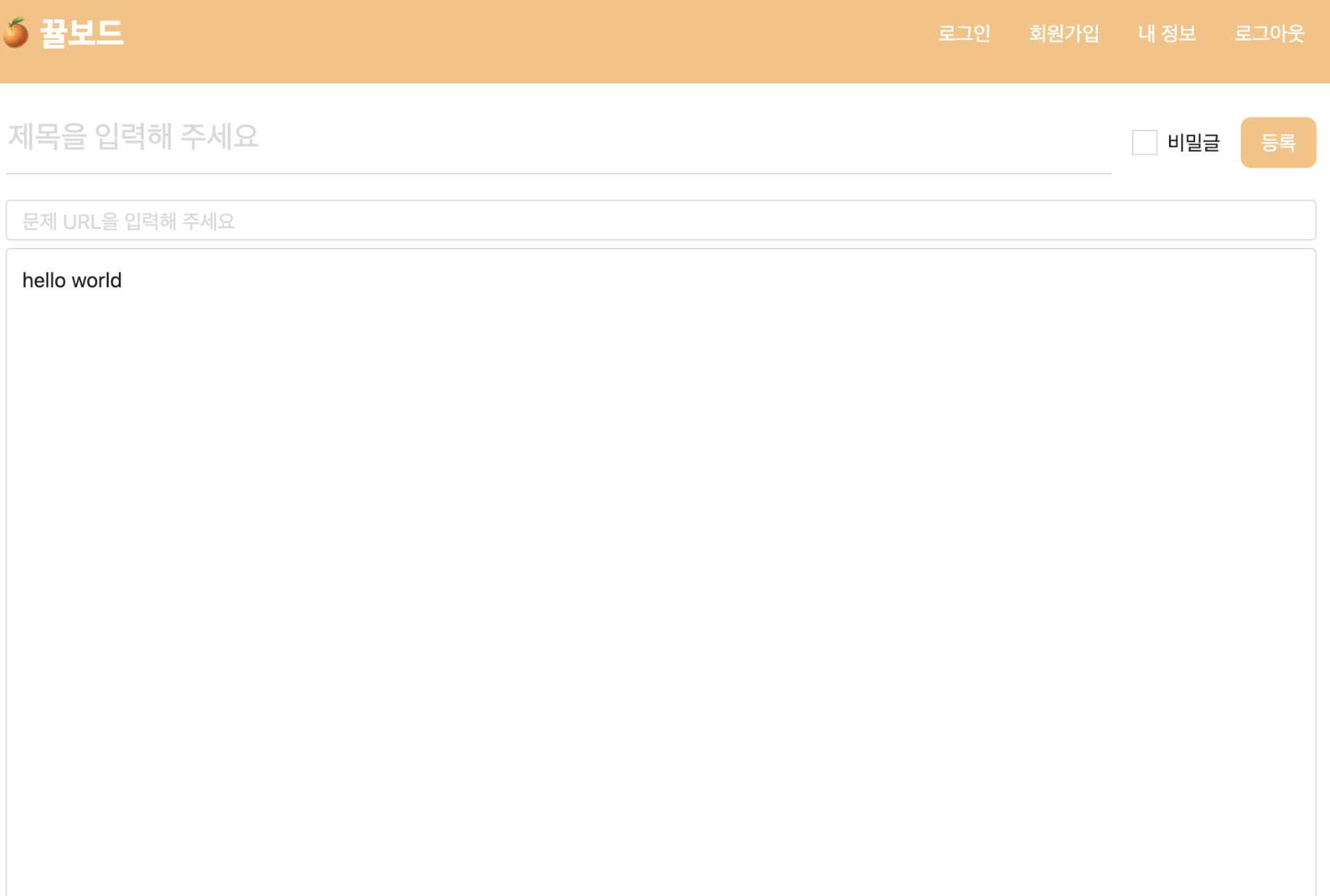 5일짜리 웹개발 프로젝트 시작! 프로젝트 <뀰보드> 🍊 프로젝트 목표 : 알고리즘 코드를 올리는 게시판 사이트를 제작