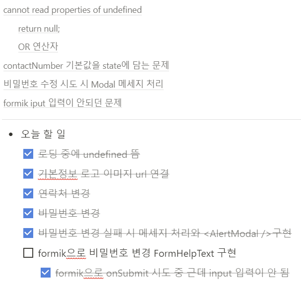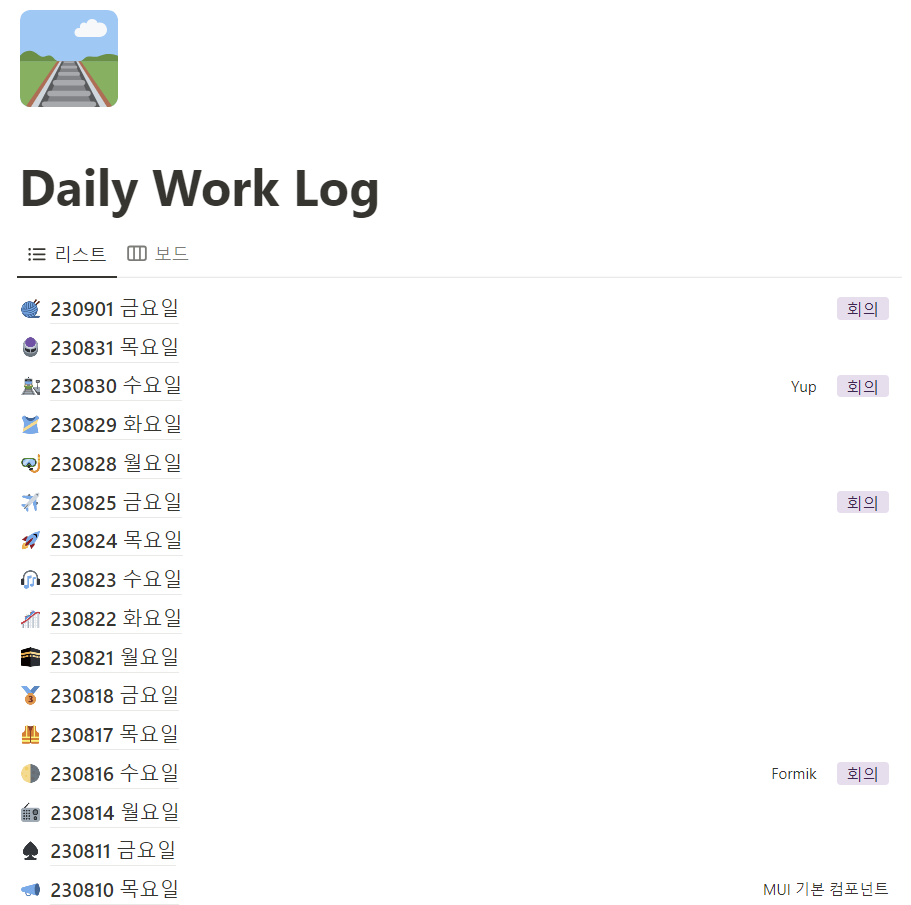 노션에 매일 업무일지를 작성하고 있다. 오늘 할 일을 체크리스트로 작성해서 디테일한 부분까지 신경쓰려 노력하고 있고, 개발 과정에서 어려움을 겪었던 부분들도 업무일지에 모두 기록하고 있다. 이렇게 기록한 내용들을 모아서 블로그에 글을 좀 작성하고 싶은데 체력이 따라주질 않는다. 🫠