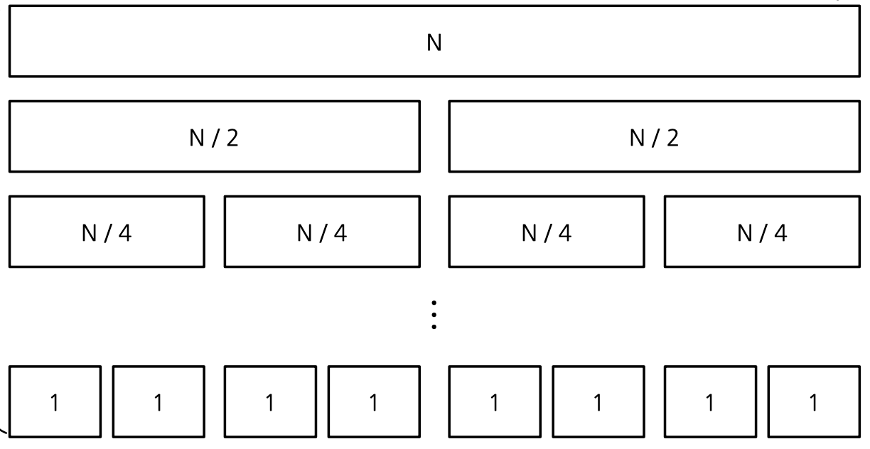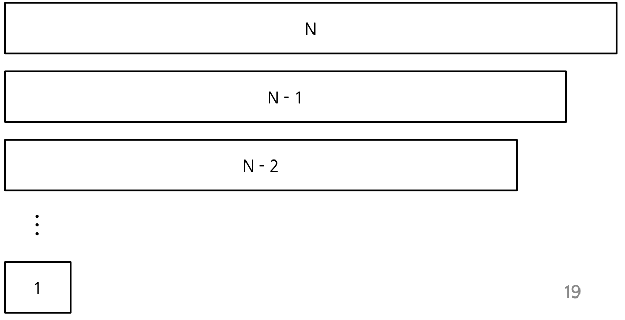 i번째 작업에서 O(N)의 시간이 걸린다고 할 수 있다.
