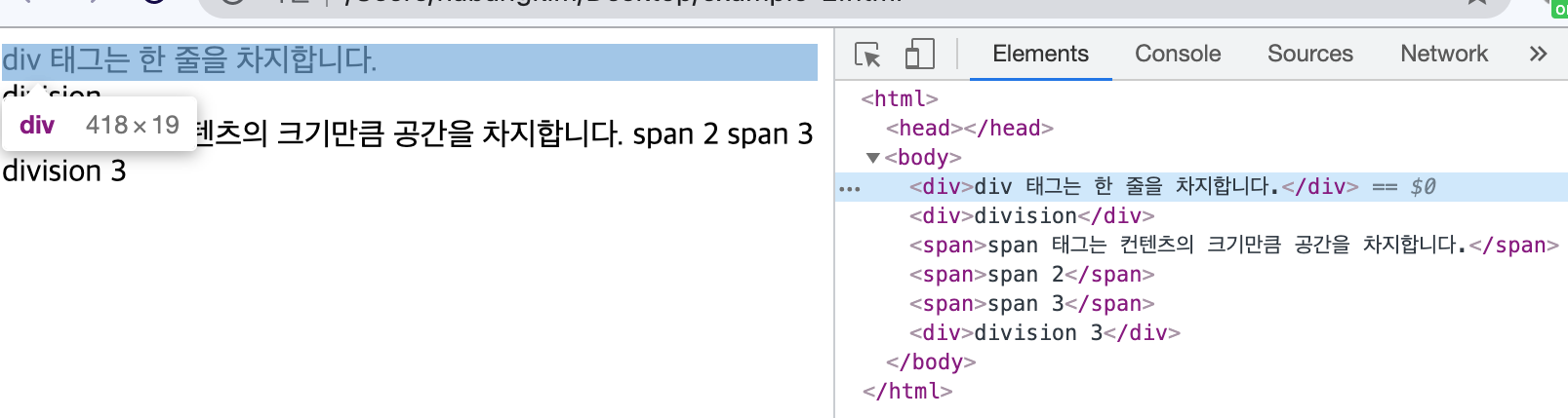 <!--div: content division 줄바꿈됨-->
