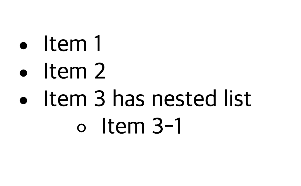 <li>Item 3 has nested list