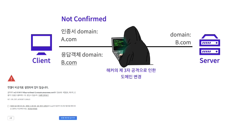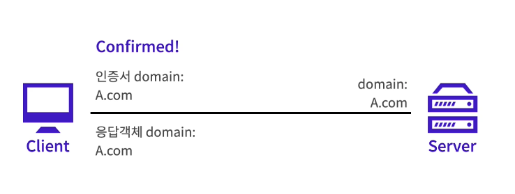- 응답을 받은 클라이언트는 인증서에 작성된 도메인과 응답객체에 작성된 도메인을 비교