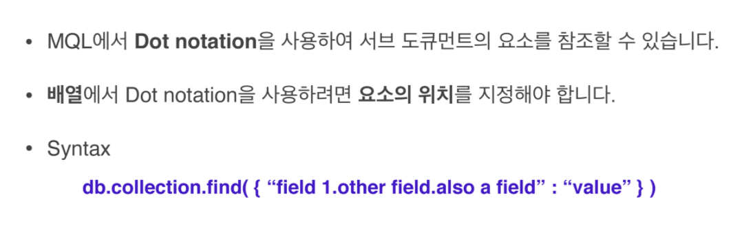 값으로 도큐먼트가 있는 필드가 있고 해당 필드의 값으로 또 도큐먼트가 있는 경우에도 점 표기법을 사용하여 해당 계층에서 도큐먼트 자체가 아닌 필드의 값을 가져올 수 있습니다.
