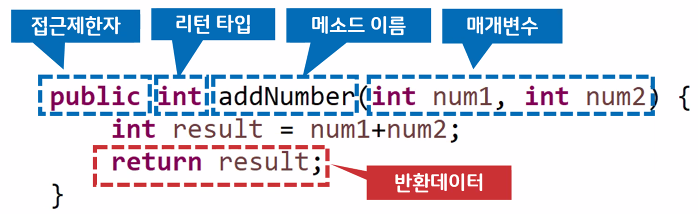 자바는 이러한 클래스 내의 함수를 메서드라고 부른다.