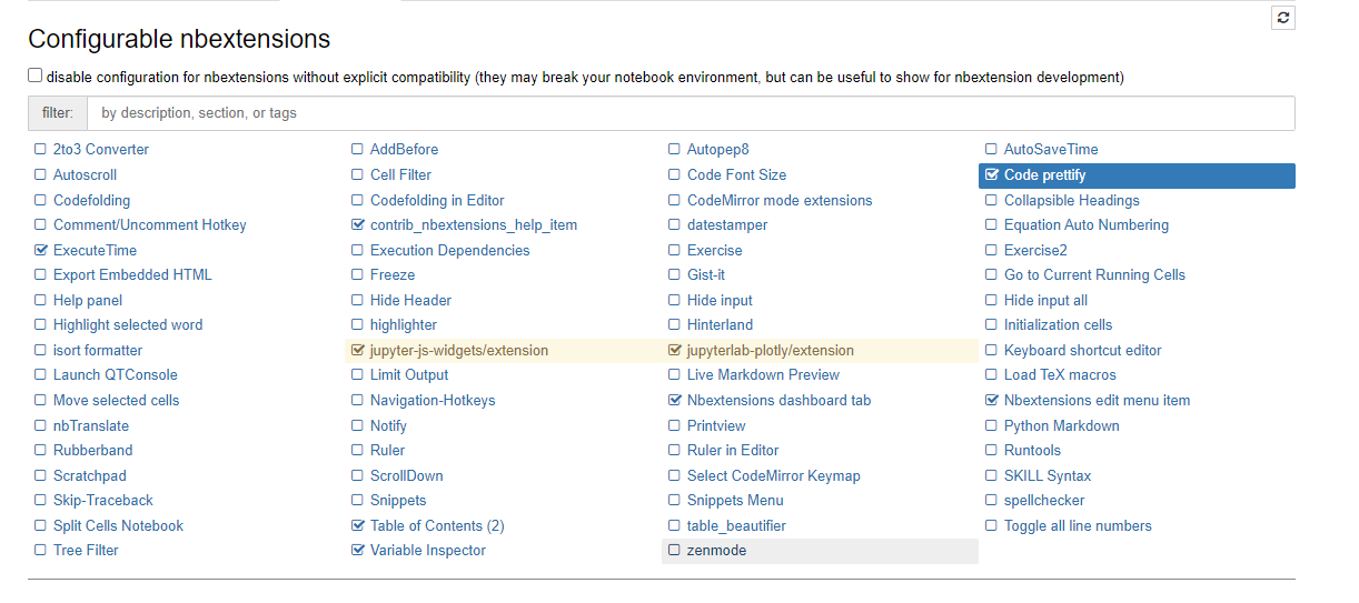 pip install jupyter_nbextensions_configurator jupyter_contrib_nbextensions