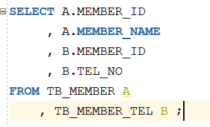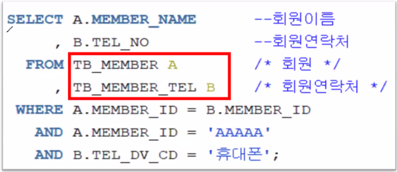 테이블 이름에 별칭 A, B 를 부여하여 간략하게 사용 할수 있음