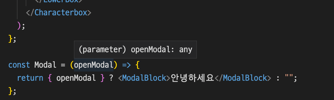 modal이 부모 컴포넌트인 identity로부터 전달받은 openModal을 Boolean값이 아닌 any로 받고 있다. 이건 문제가 아니였다