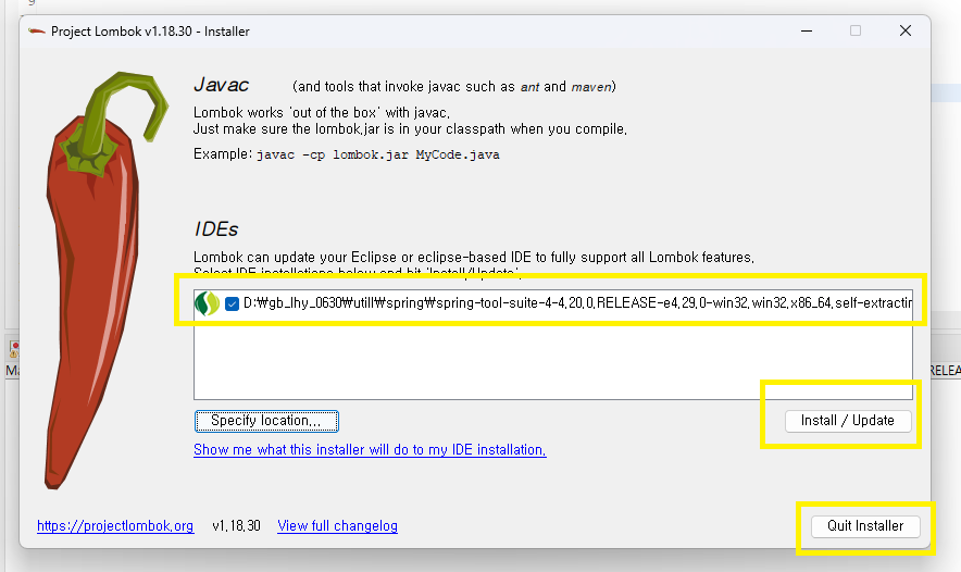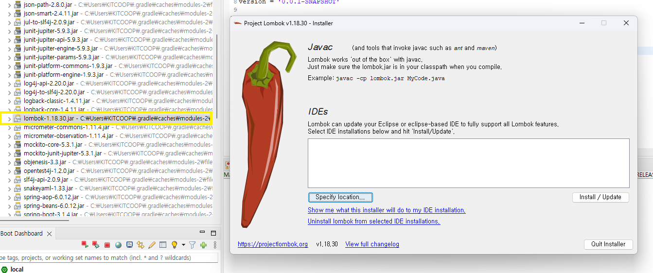 // lombok 라이브러리 추가 compileOnly 'org.projectlombok:lombok' annotationProcessor 'org.projectlombok:lombok'