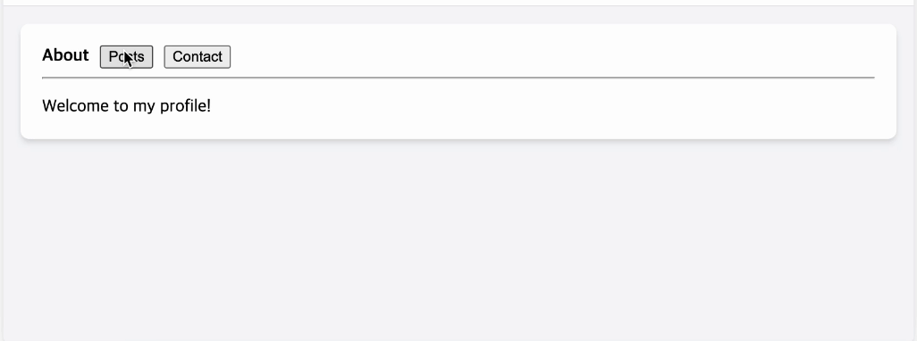 다음은 Suspense를 통해 posts 탭을 클릭하면 구성 요소가 일시 중단되고 로딩 폴백이 나타나도록 구현한 코드와 코드의 실행 모습이다.
