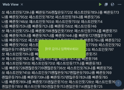 다음과 같이 입력창 업데이트가 화면에 바로 반영되어 버벅임이 많이 개선된 모습을 확인할 수 있다.