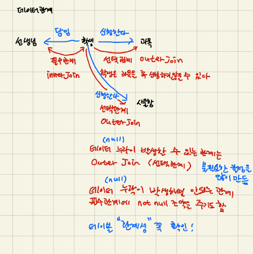 --기준 테이블의 모든 row를 가져오고 다른 테이블과 일치하는 값이 있으면 일치하는 row를 연결하고 없으면 null값으로 처리