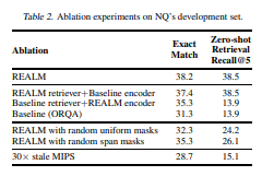 -> encoder와 Retriever를 모두 재설정하면 ORQA로 줄어든다. 둘다 REALM 훈련의 혜택을 개별적으로 받지만, 최상의 결과는 두 구성 요소가 모두 일치해서 작동해야한다.