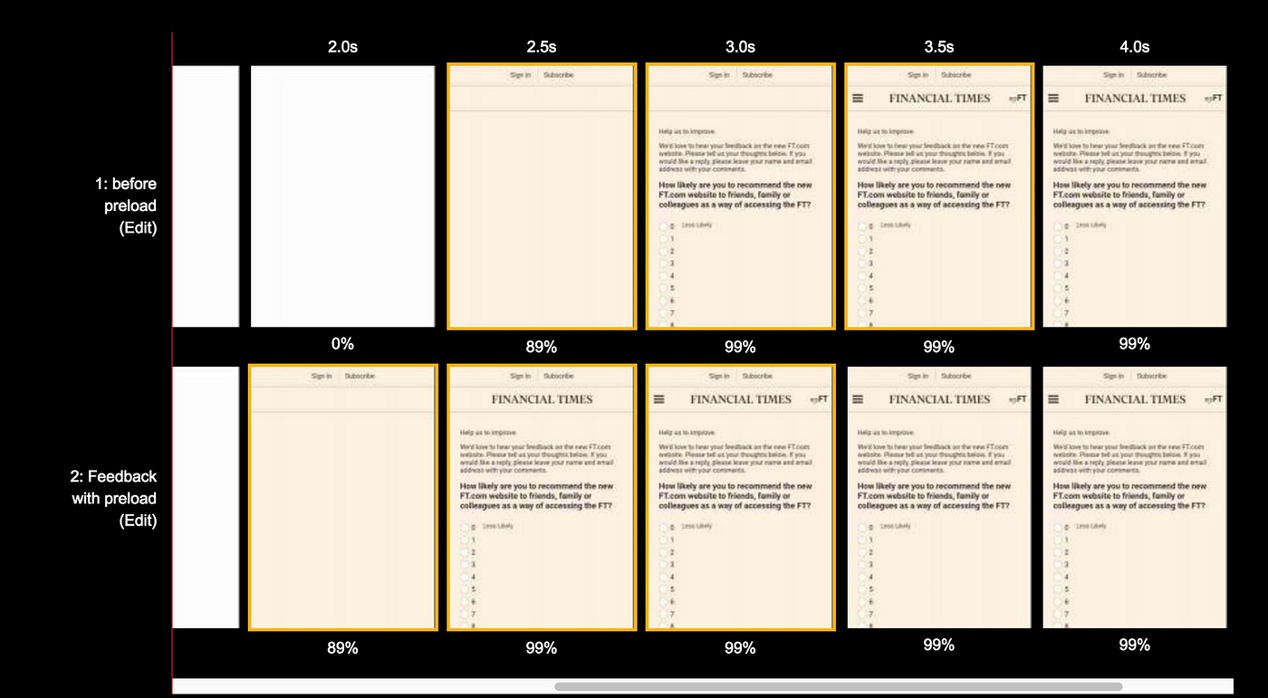 Preload 적용 전후 렌더링 비교 (Financial Times 실험 예시)