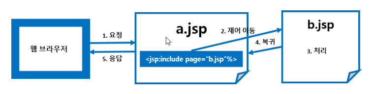 jsp 페이지 내에 다른 페이지를 삽입하는 액션 태그입니다.<jsp:include pagr="second.jsp" />