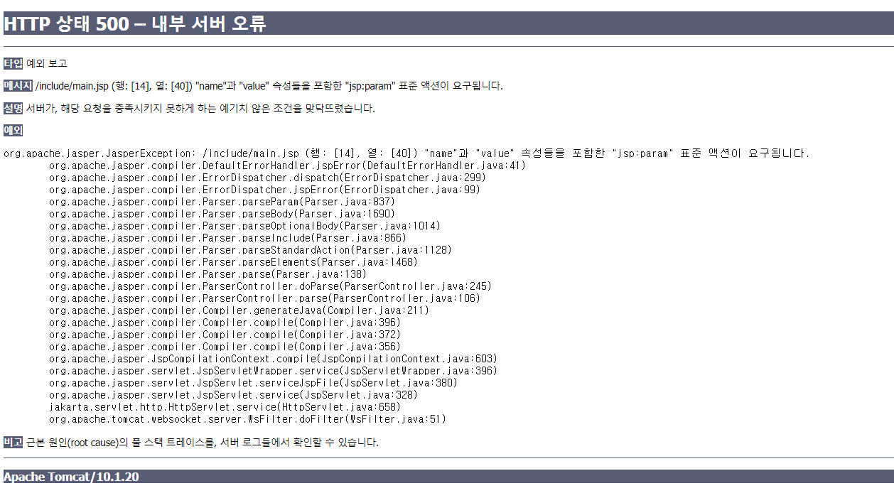 이클립스에서 <jsp:param> 태그를 쓰던 중에 발생한 오류다.