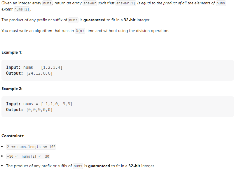 문제링크 : https://leetcode.com/problems/product-of-array-except-self