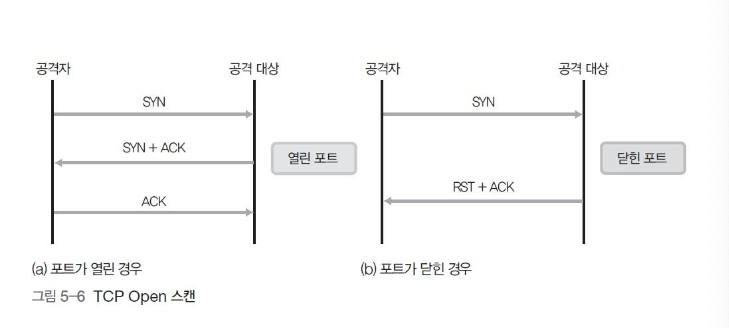 - FIN 스캔 이용 : 적용되는 운영체제는 윈도우, BSD, Cisco, IRIS 등