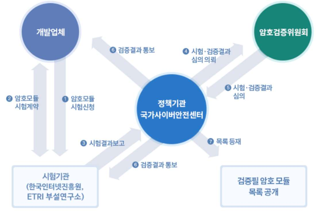 - 주요 국가/공공기관에서 사용하는 암호모듈의 안전성을 검증하는 제도