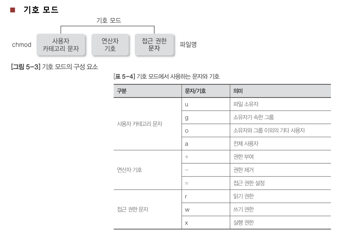 chmod [-R] 권한 모드 파일 또는 디렉토리명