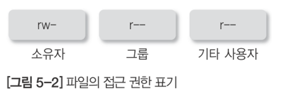 사용자 카테고리 별로 세 가지 권한의 부여를 rwx 세 문자를 묶어서 표기됨