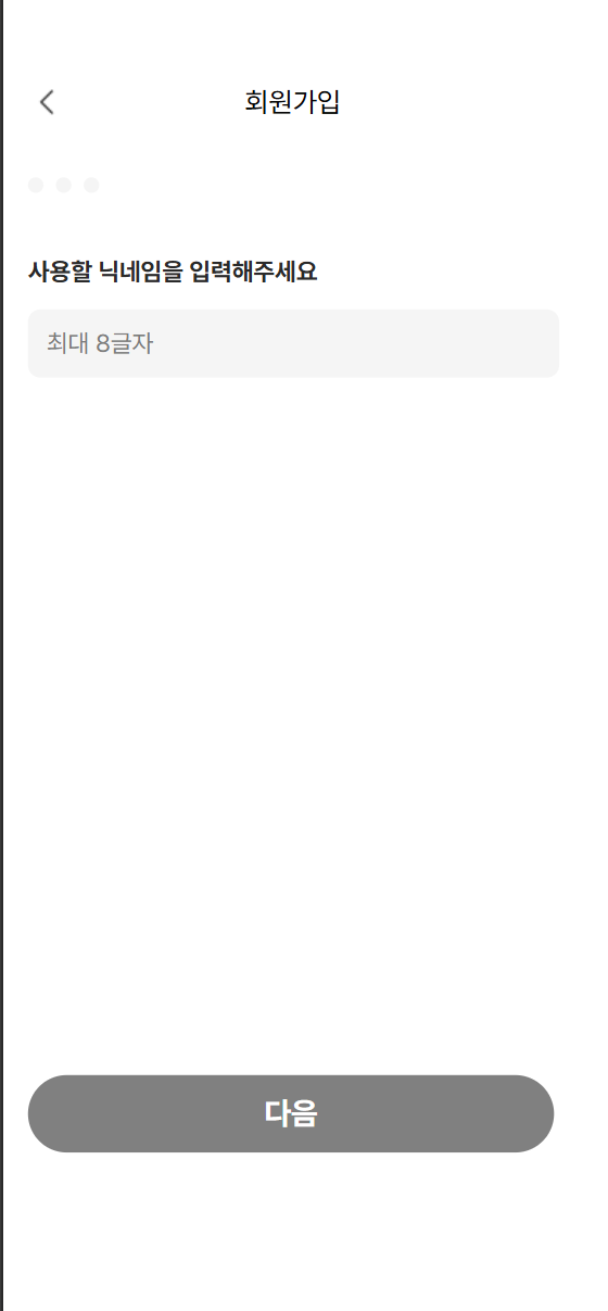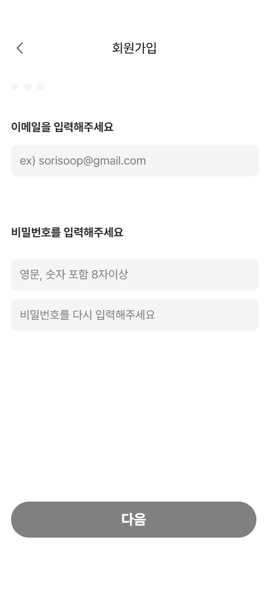 문제가 되는 지점은 회원가입 절차 중 2번째로 email과 비밀번호를 입력하는 단계이다.
