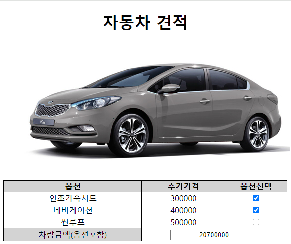 <h1>자동차 견적</h1>