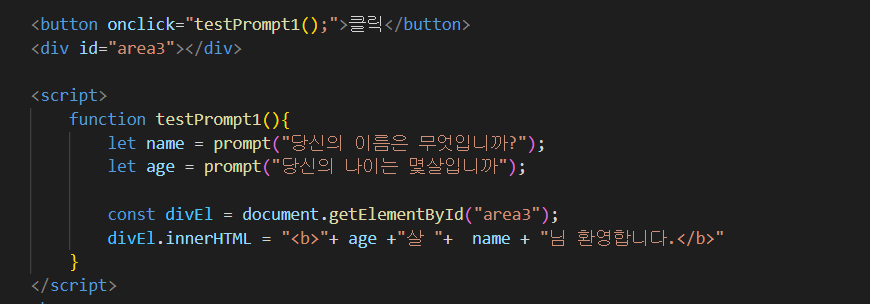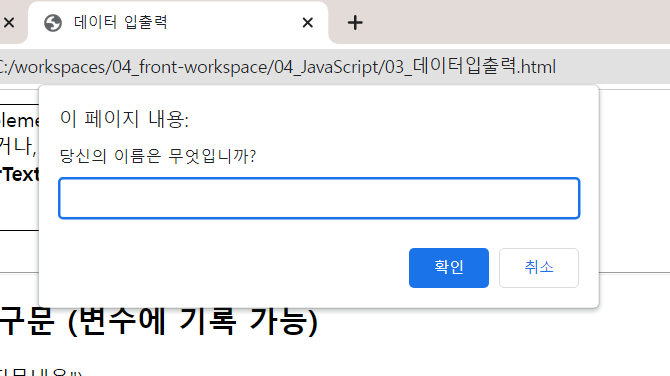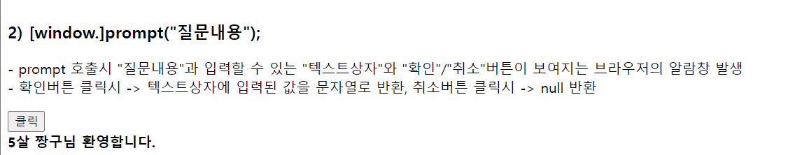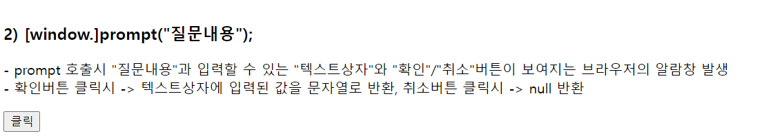 2) 변수 = [window.]prompt("질문내용");