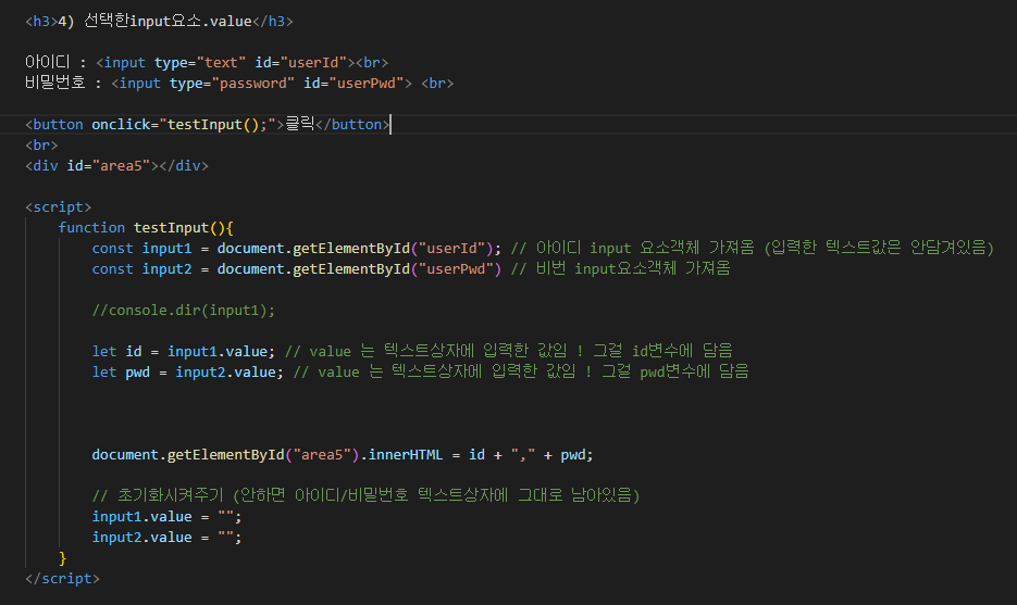4) 변수 = 선택한input요소.value;