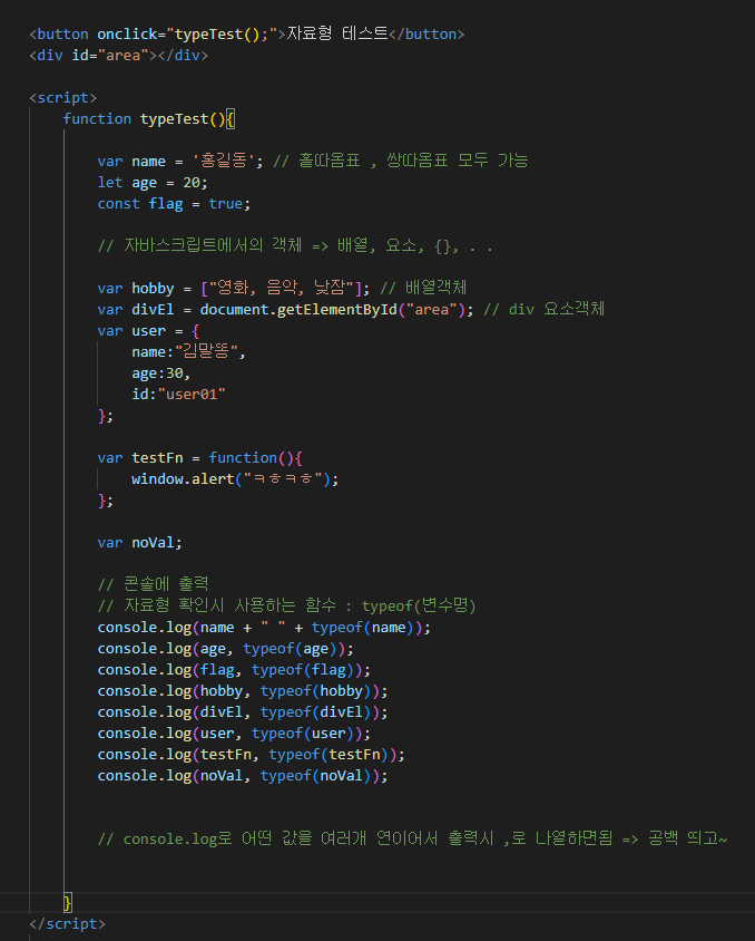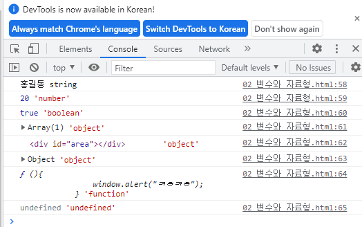 2) [window.]console.log("브라우저의 콘솔창에 출력할 문구");
