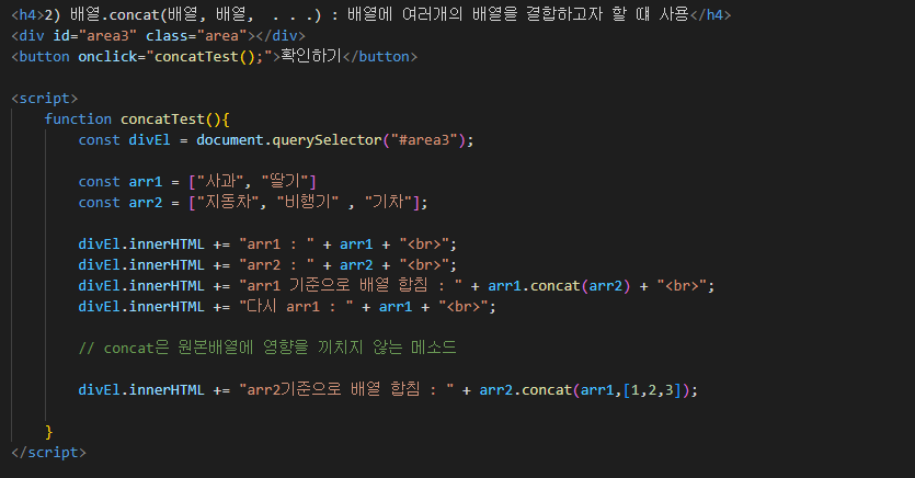 3) arr1 기준으로 배열 합치기 : arr1.concat(arr2)